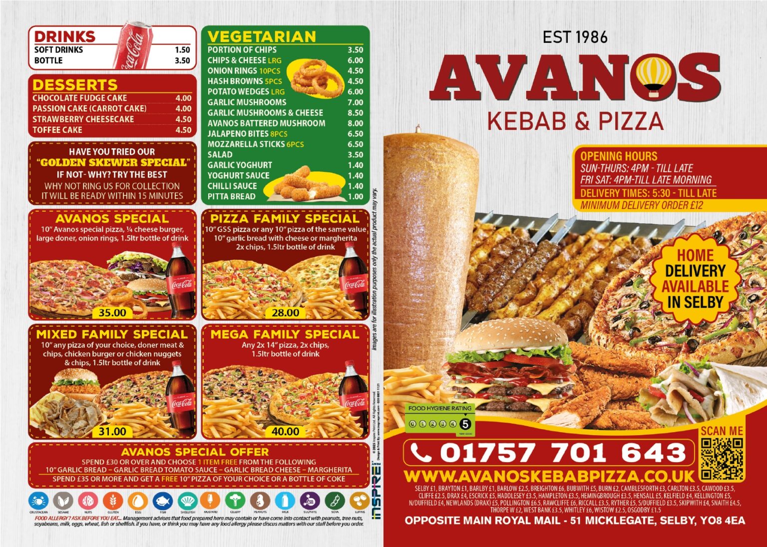 Browse our full menu to discover your next favorite meal and experience the best takeaway in Selby!